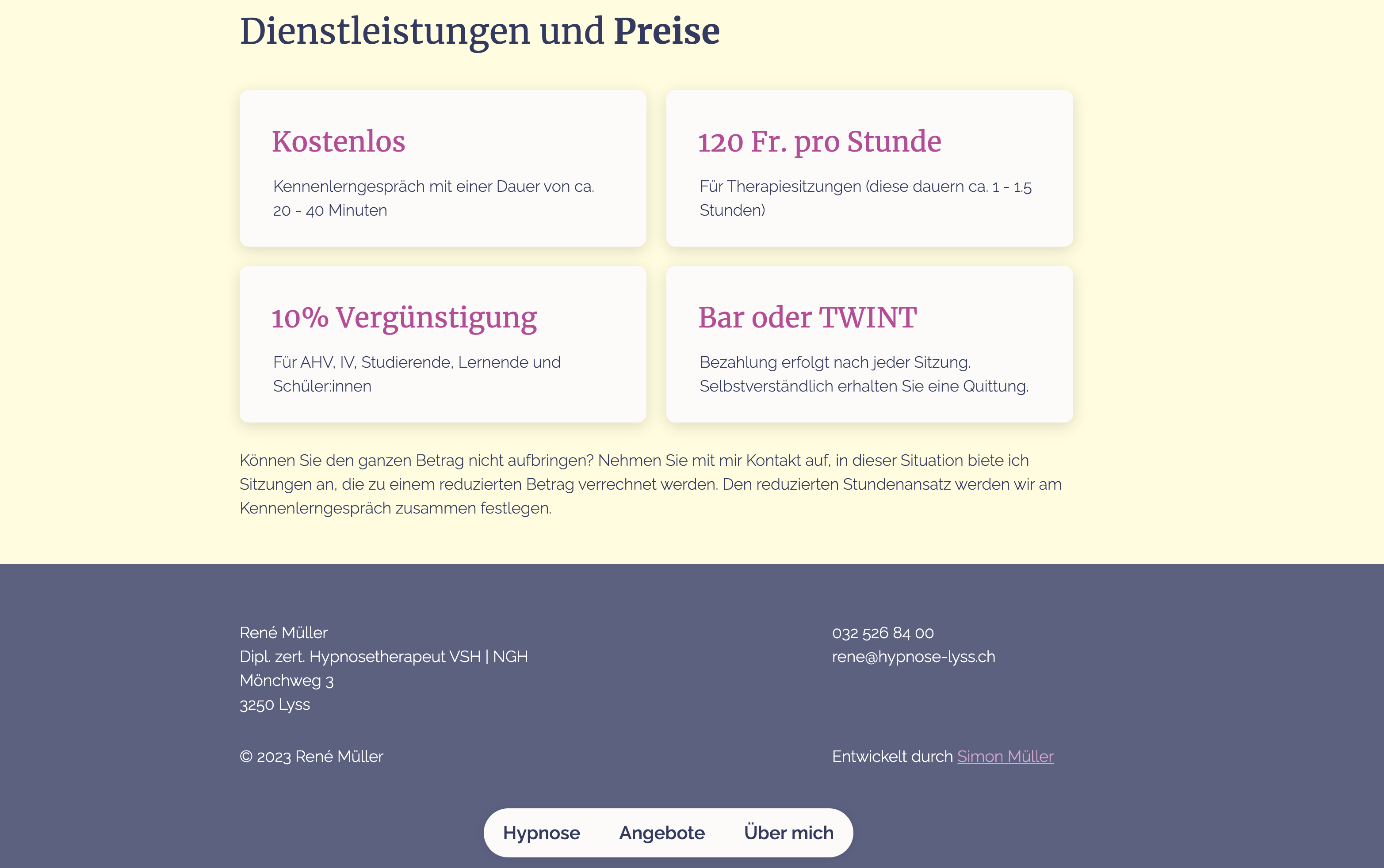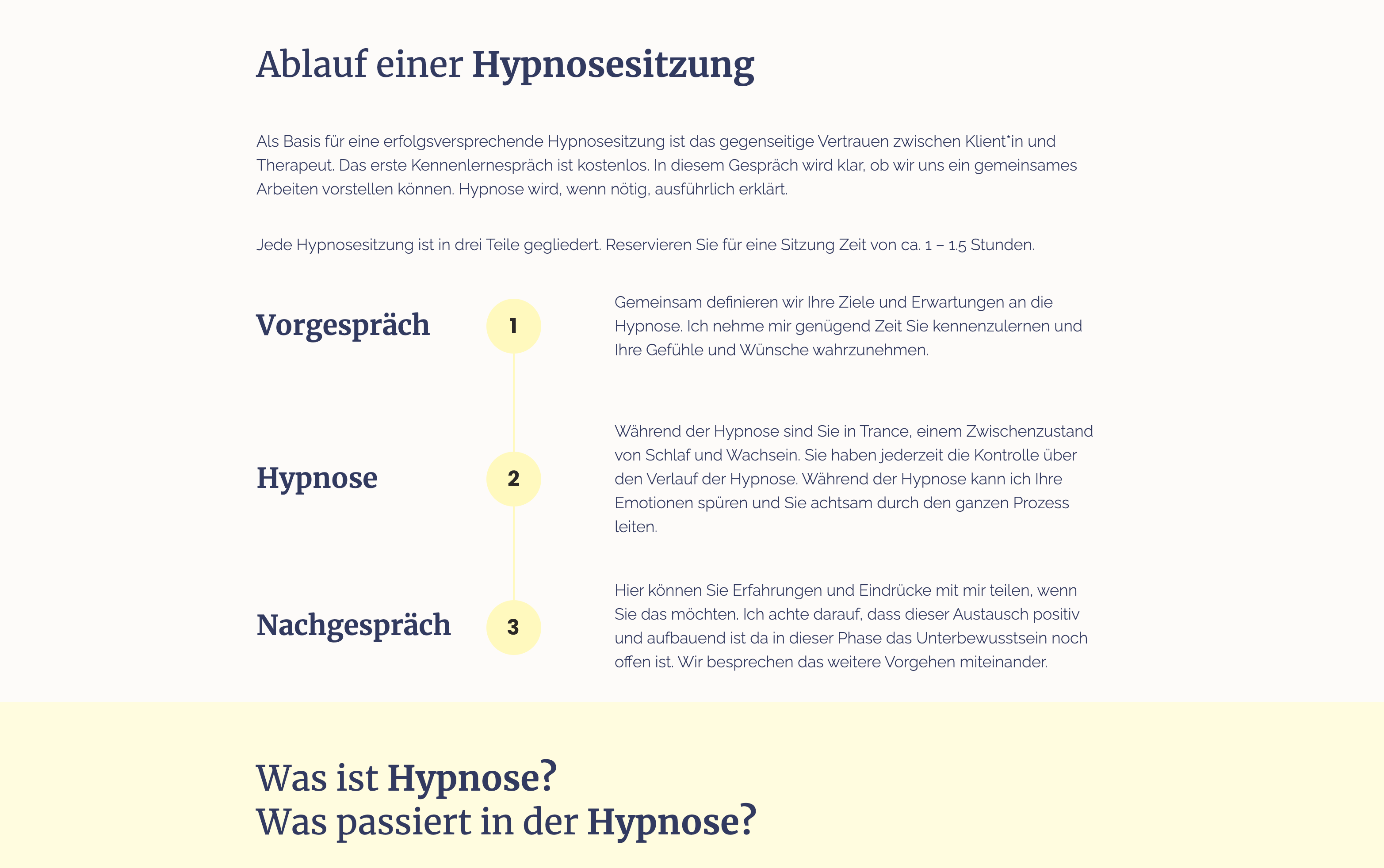 In this commissioned work, a simple website was designed for a self-employed hypnotherapist. The goal was to have a page with the most important information about the therapy and a contact form as soon as possible.